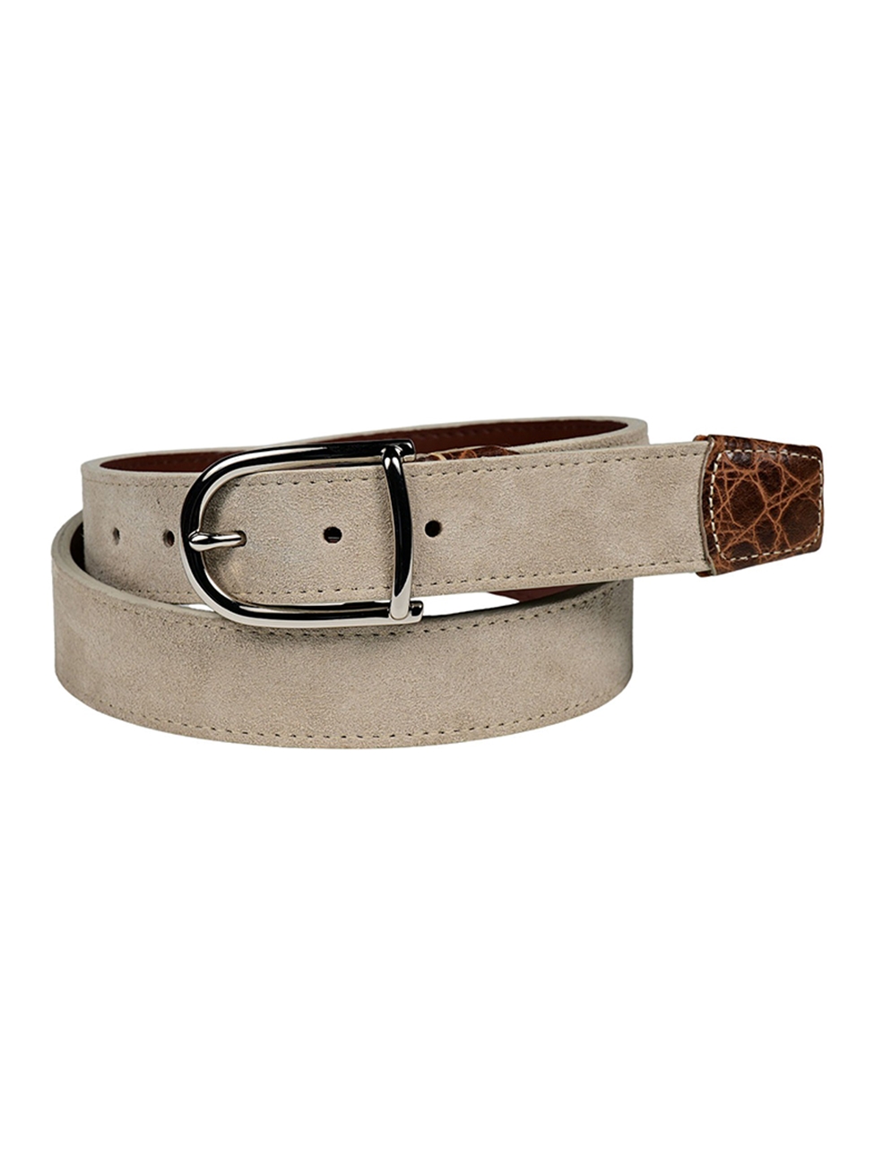 Tundra Suede Calfskin With Crocodile-Embossed Calfskin Tabs Belt