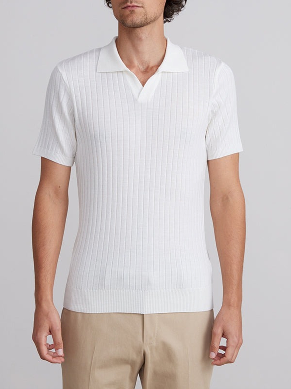 → White Vertical Structure Short Sleeve Ribbed Men's Polo