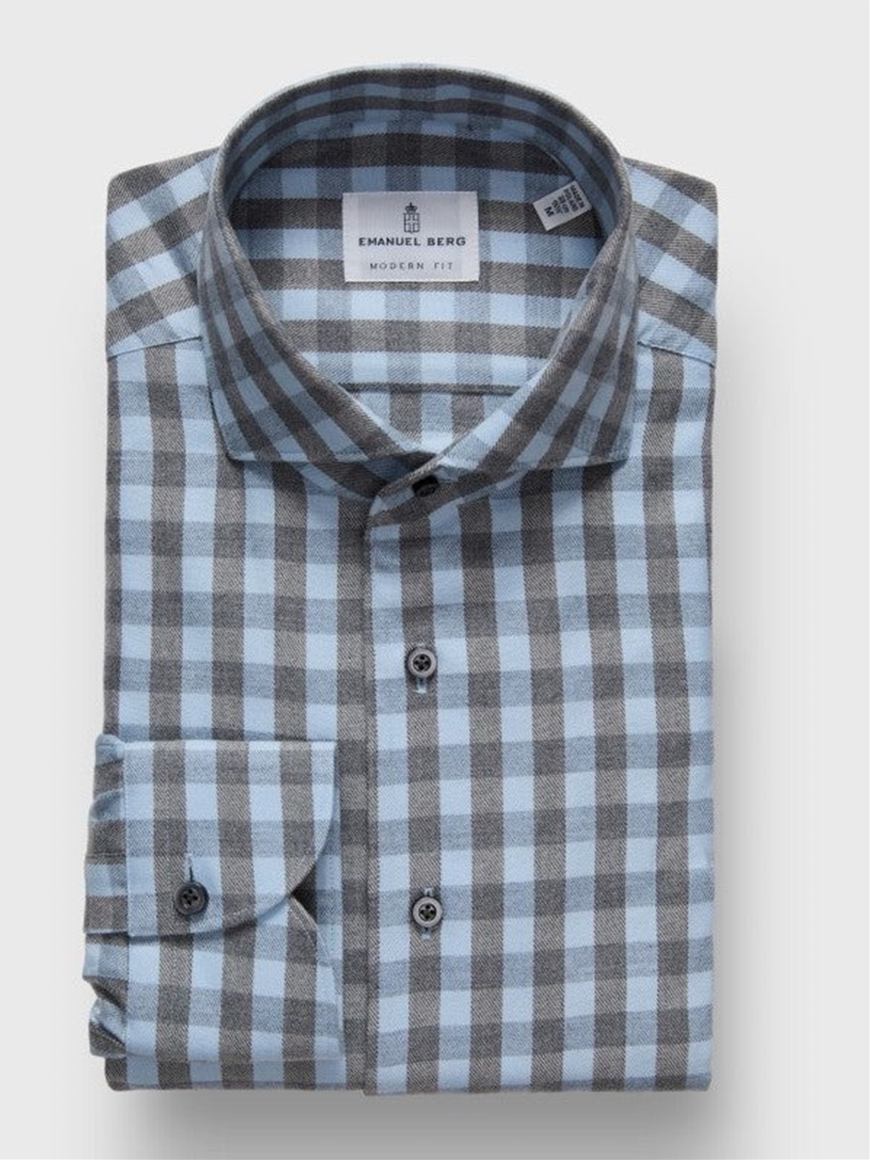 → Light Pastel Blue Cotton Lyocell Luxe Flannel Checked Shirt