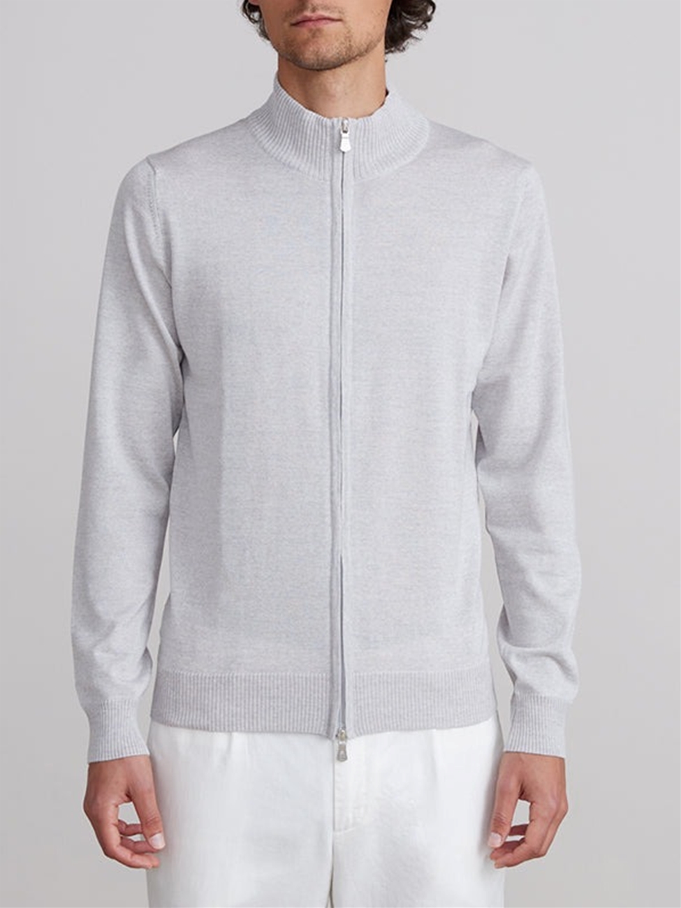 → Light Grey Full Zipper Luxury Men's Cardigan