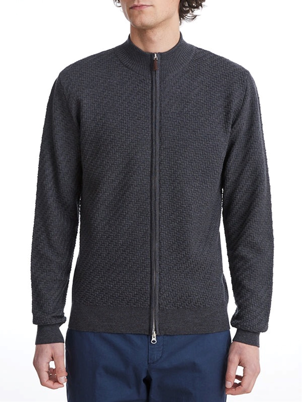 Dark Grey Light Gauge HighNeck Jacquard Zipper Sweater