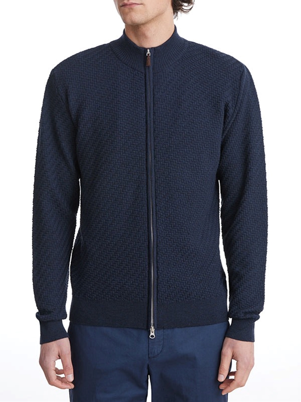 Navy Light Gauge Structured Zipper Men's Cardigan