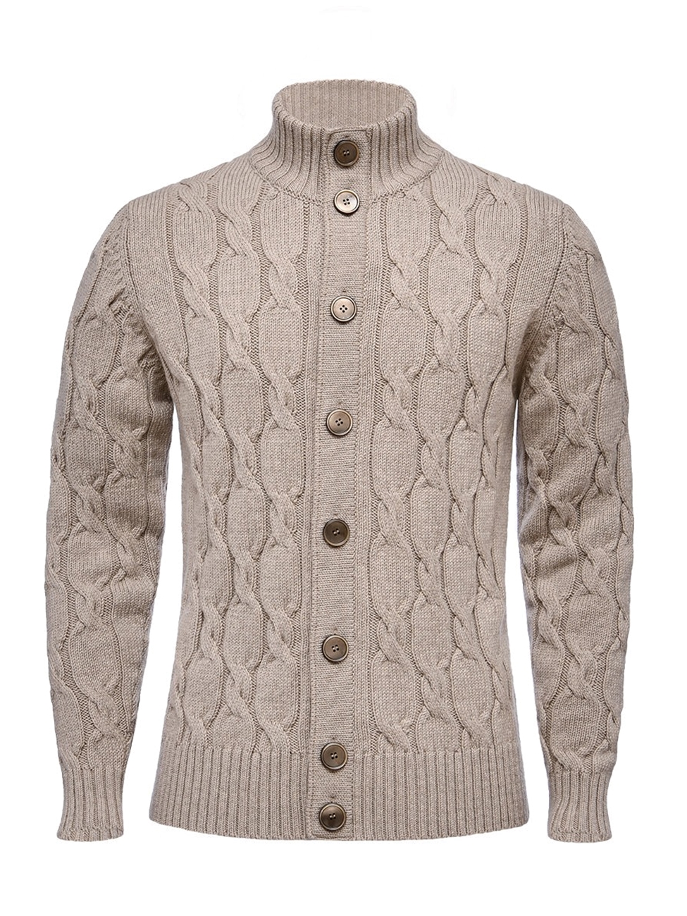 Beige Light Gauge HighNeck Men's Zipper Sweater