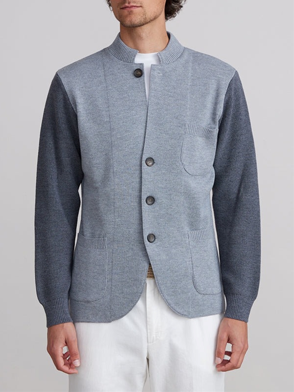 Medium Grey Light Gauge Structured Zipper Men's Cardigan