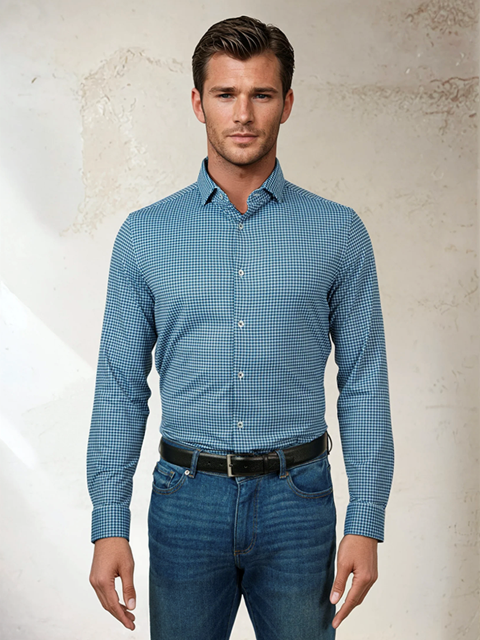 Medium Blue Micro Houndstooth Apex Men'S Shirt