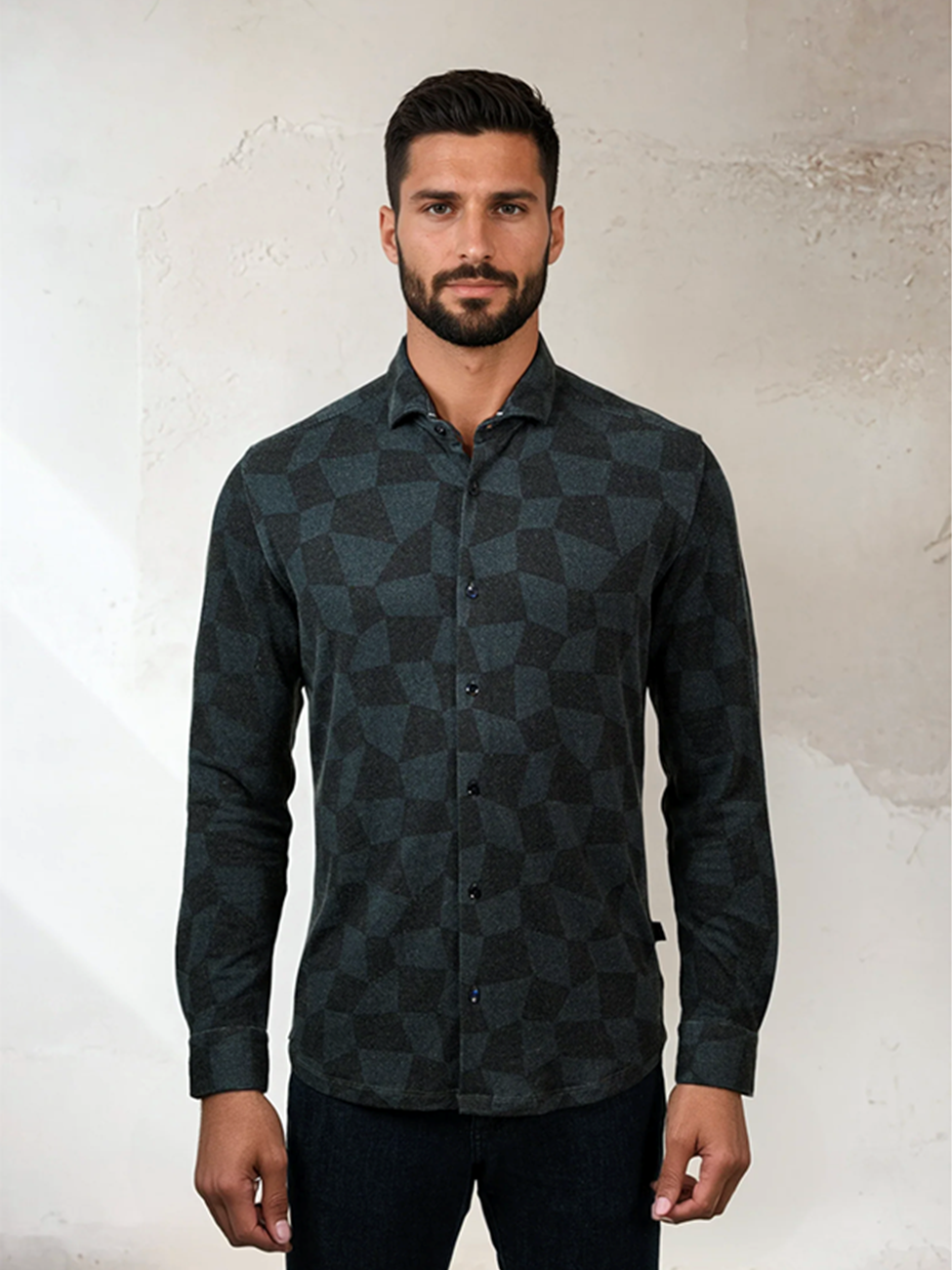 → Black Warped Checkerboard Long Sleeve Rover Shirt