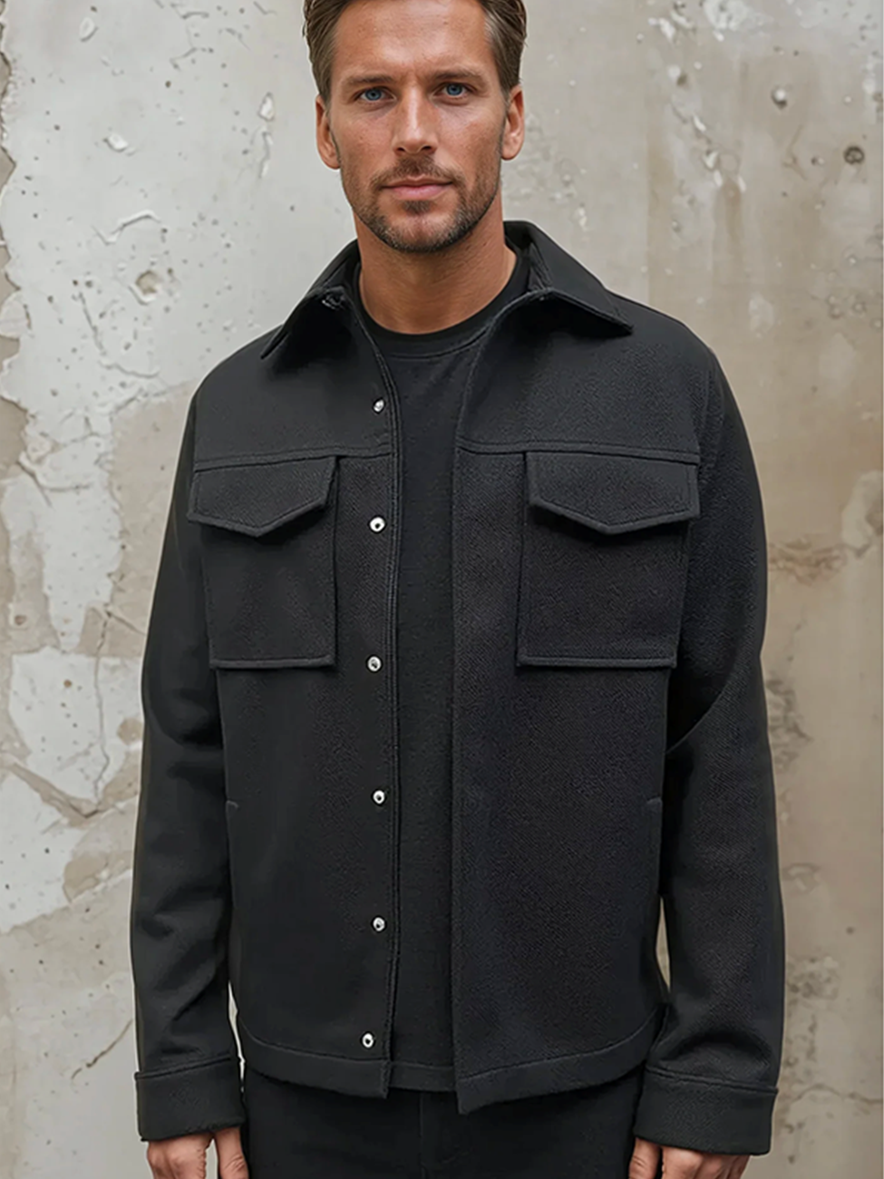 Black Stretch Twill Fine Studio Men'S Jacket