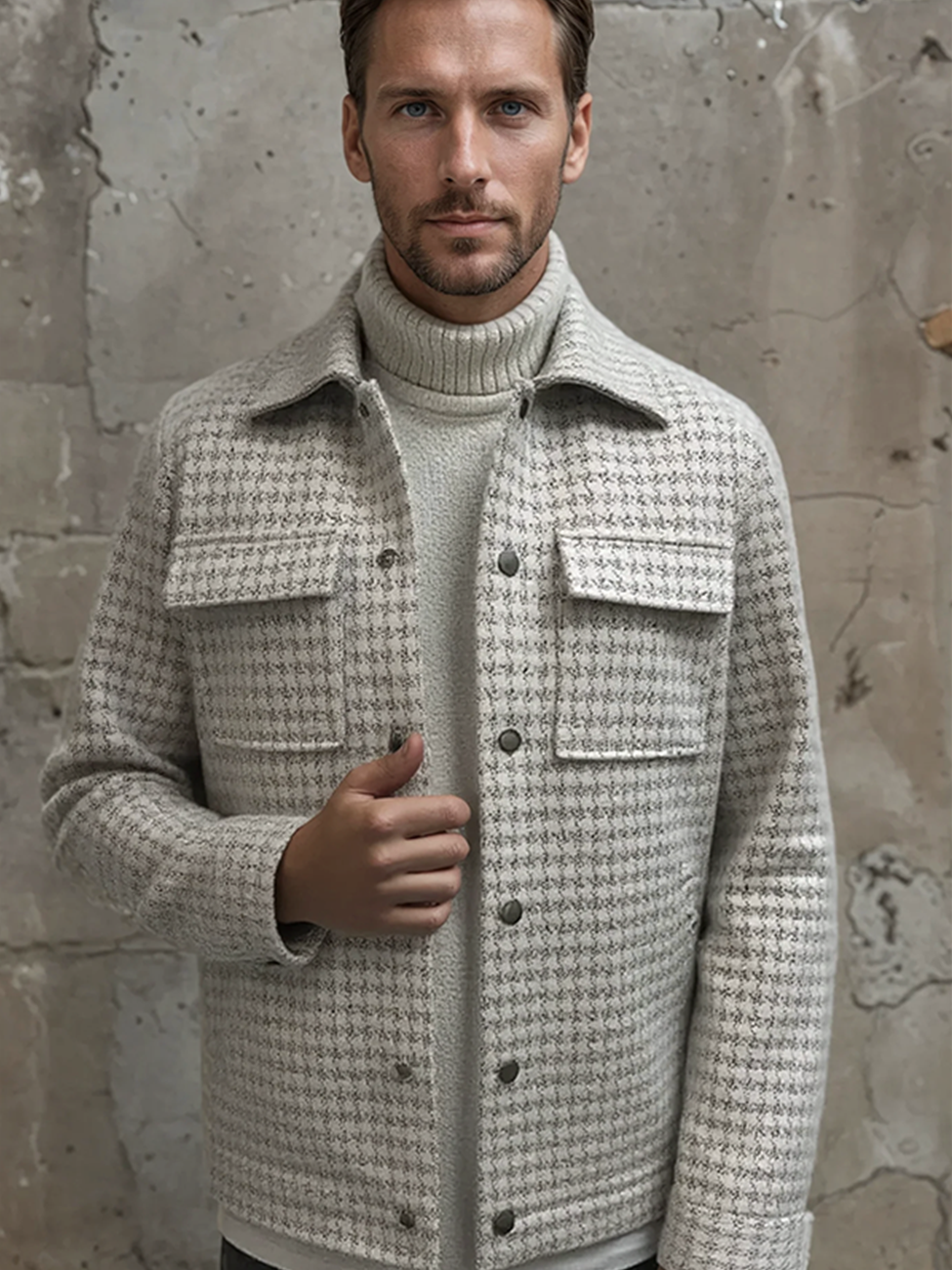 Light Beige Knit Houndstooth Men Hunter Jacket