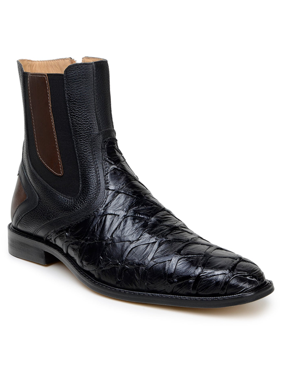 Black Pirarucu Fish Leather & Calf Lima Ankle Boot