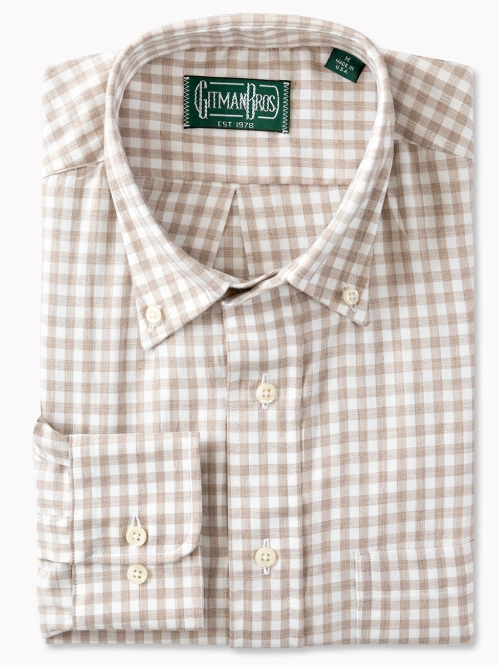 Tan Brushed Twill Check Long Sleeve Men Shirt