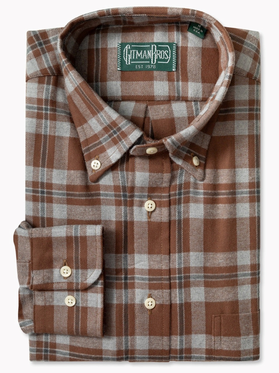 → Brown Brushed Twill Check Long Sleeve Shirt