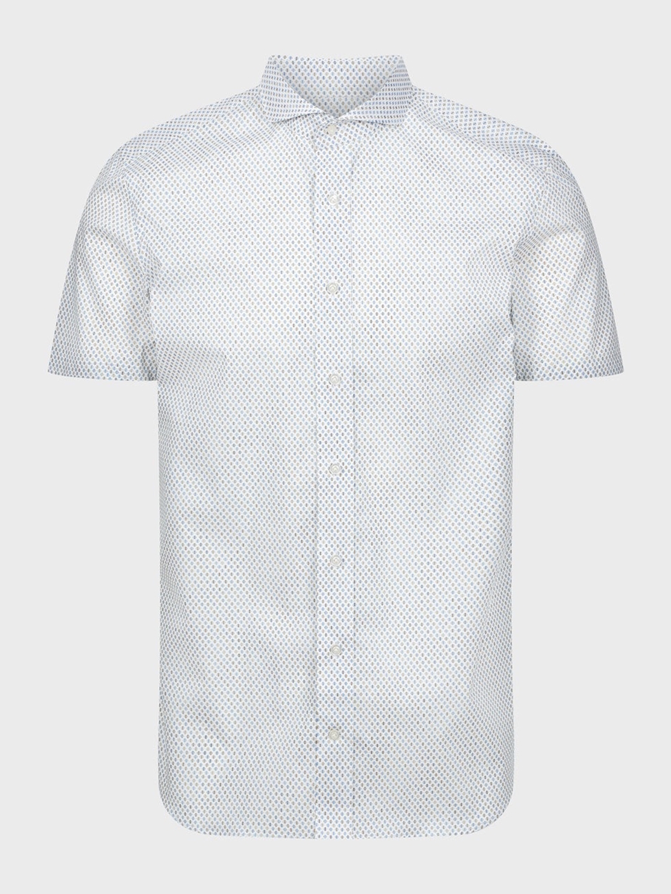 → Brown Printed Poplin Stretch Short Sleeve Sport Casual Shirt