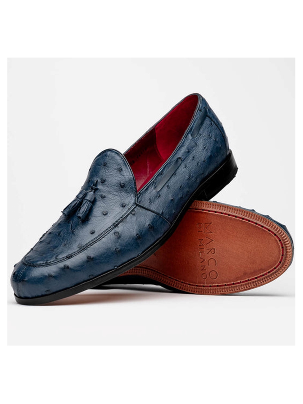 → Navy Genuine Ostrich Quill Men's Tassel Loafer