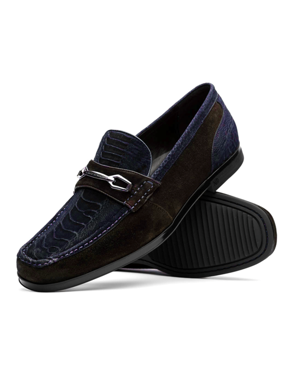 → Navy/Brown Suede Ostrich Leg Men's Loafer
