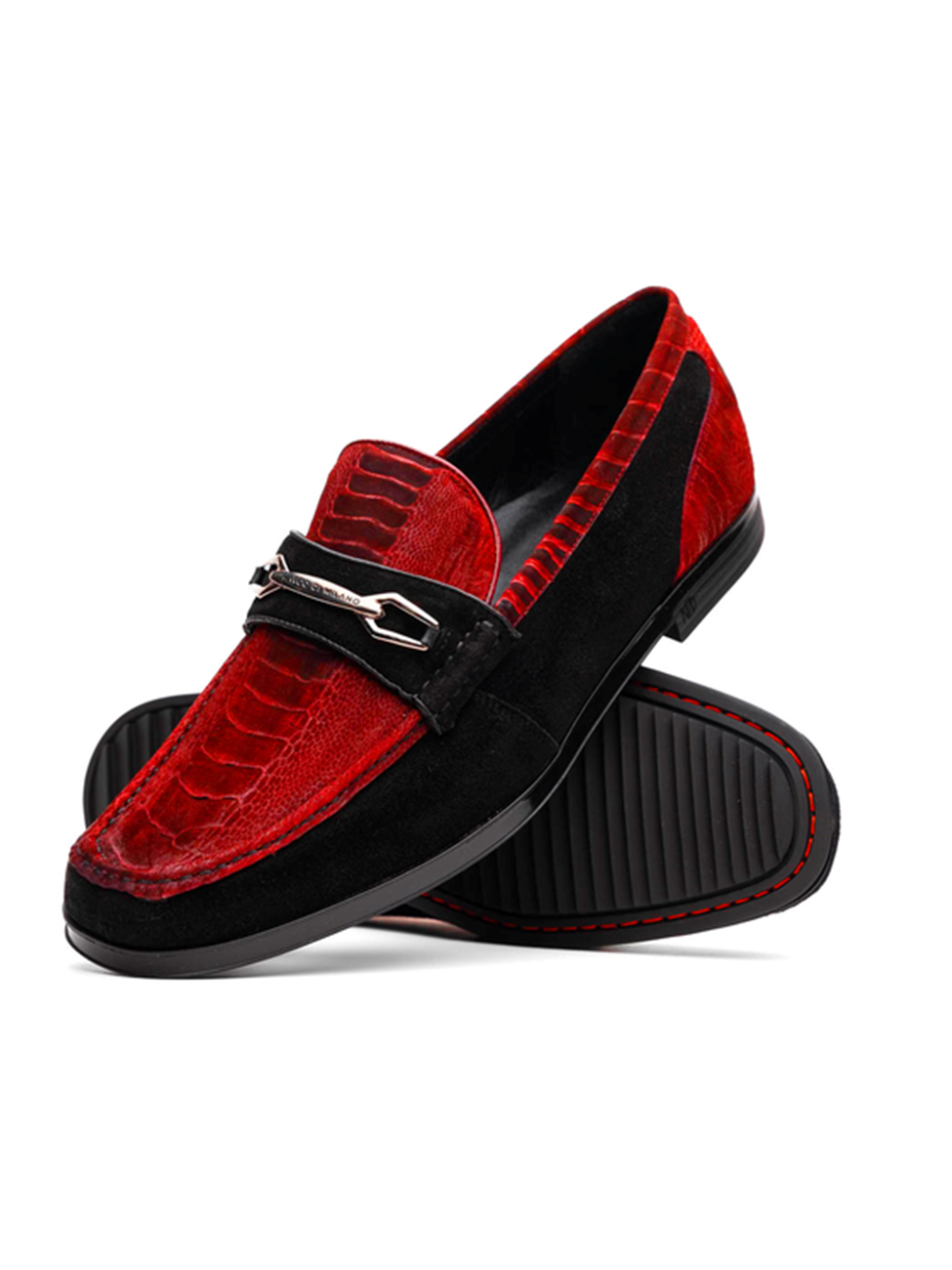 Red/Black Suede Ostrich Leg Men's Loafer