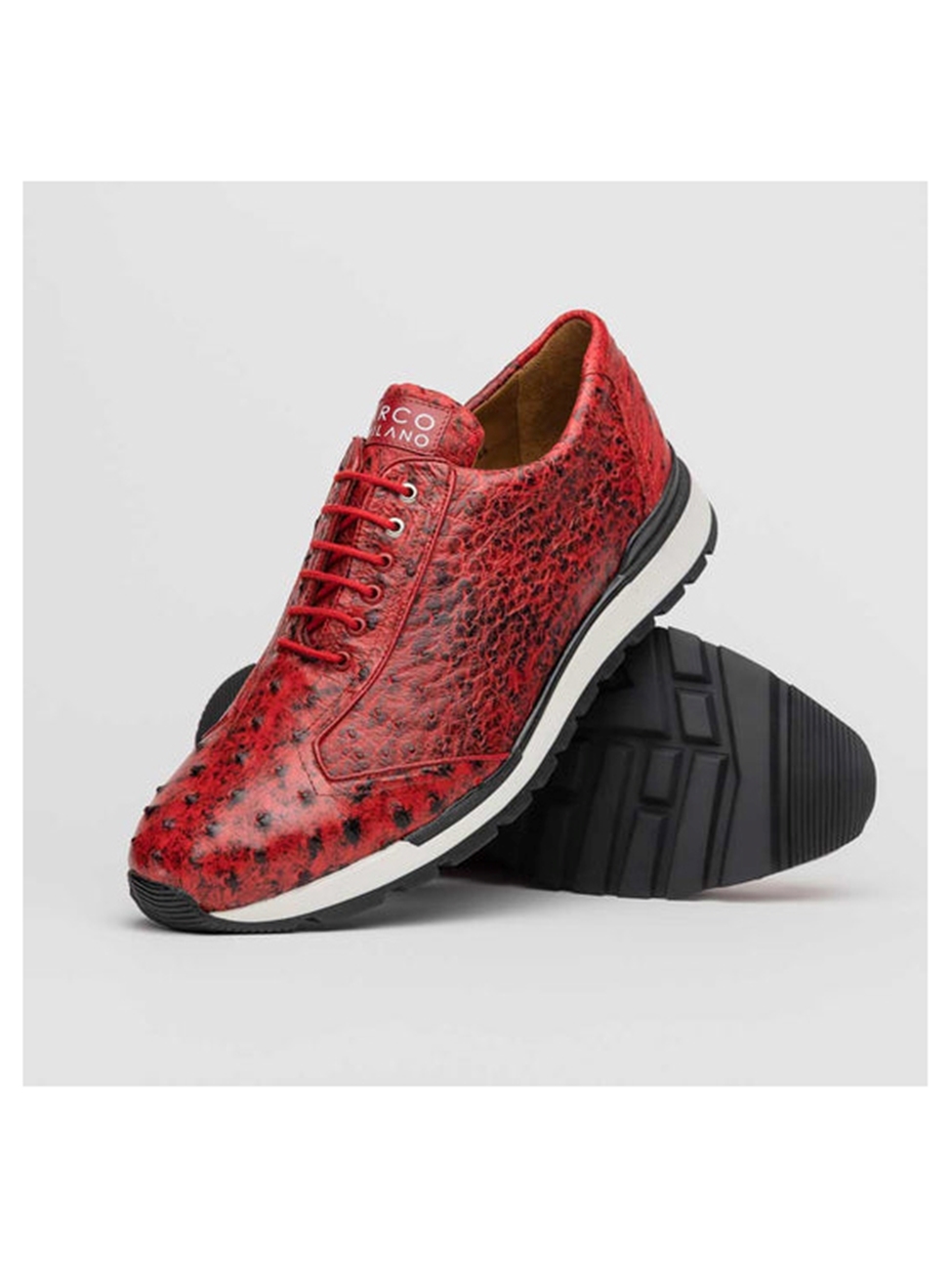 Antique Red Genuine Ostrich Quill Men's Sneaker