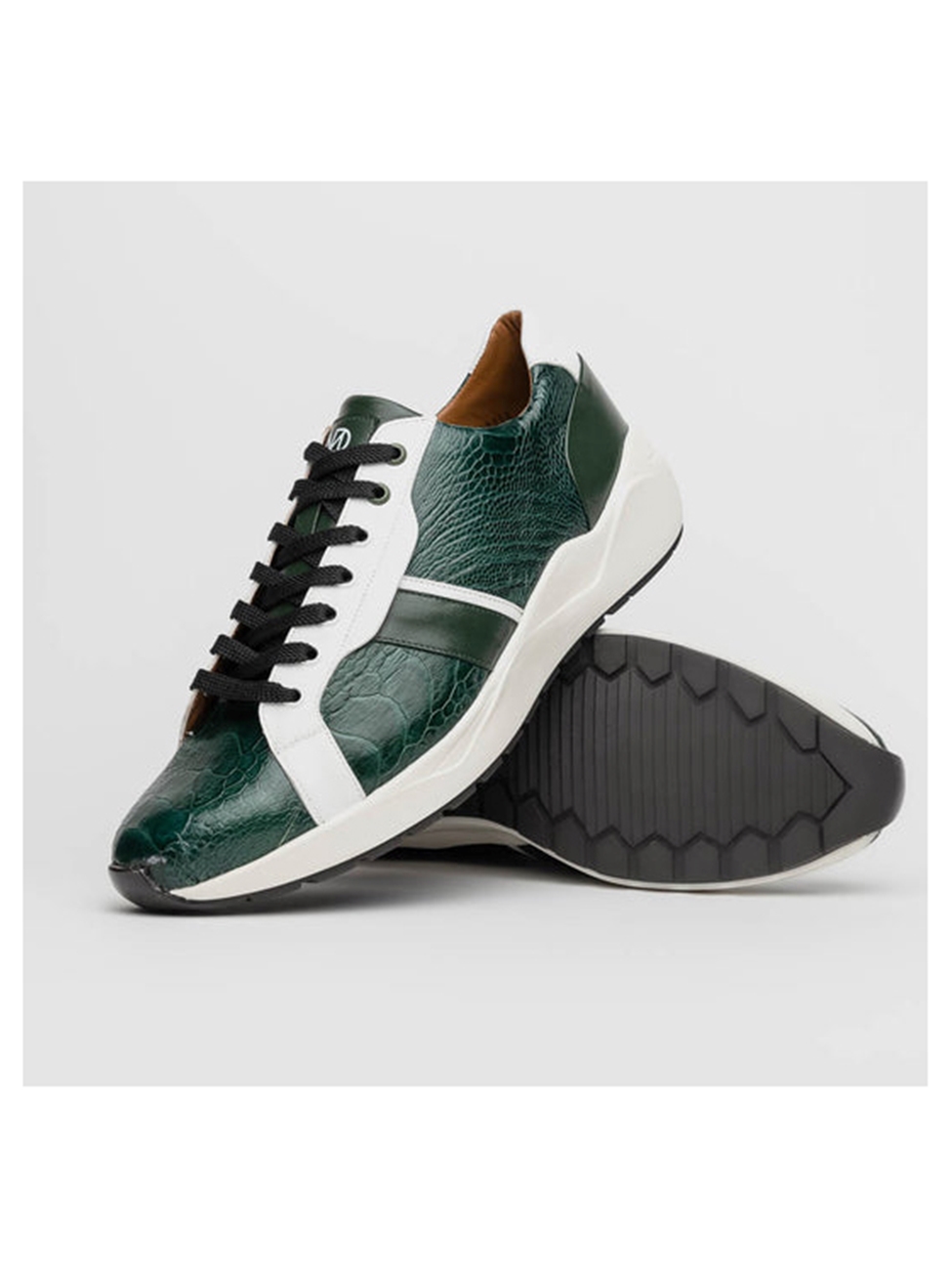 → Green/White Genuine Ostrich & Calfskin Men's Sneaker