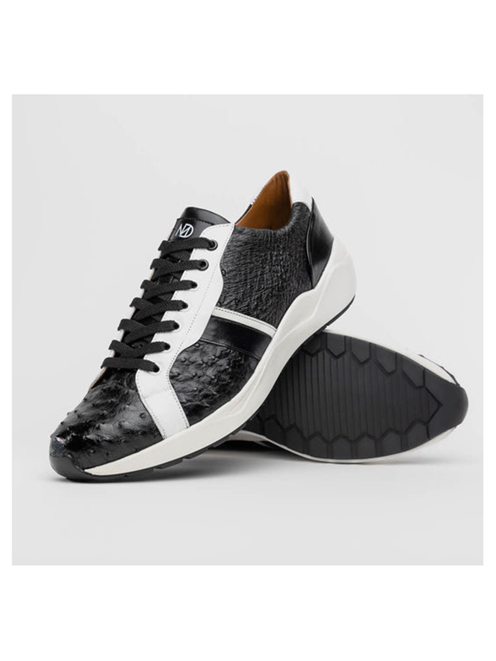 → Black/White Genuine Ostrich & Calfskin Men's Sneaker