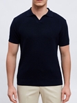 Emanuel Berg Dark Blue Light Gauge Structured Long Sleeve Polo