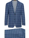Hickey Freeman Black w/ Blue Wide Windowpane Suit