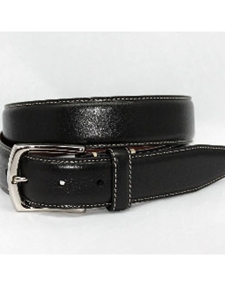 Brown Contrast Stitched Italian Soft Calfskin Belt