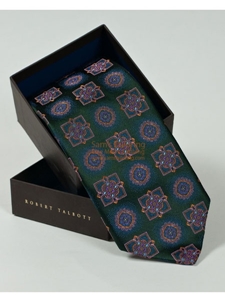 → Dark Jungle Green Diamond and Floral Design Best of Class Tie