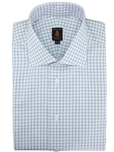 Sky/Navy/White Fine Check Design Spread Collar Cotton Estate Dress Shirt