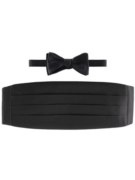 → Solid Black Satin Cummerbund With Pre-Tied Bow Tie