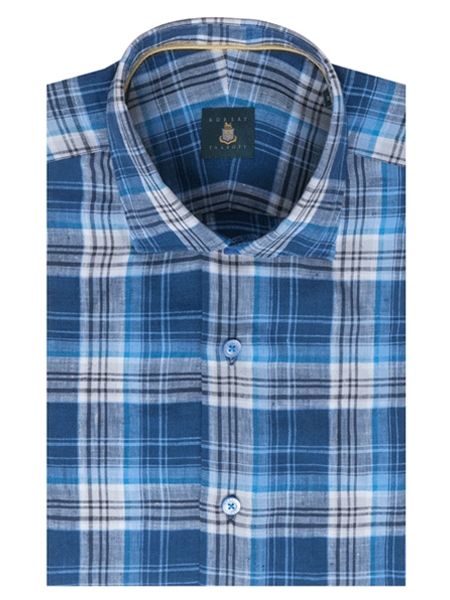 Navy, Sky and Brown Check Estate Tailored Dress Shirt