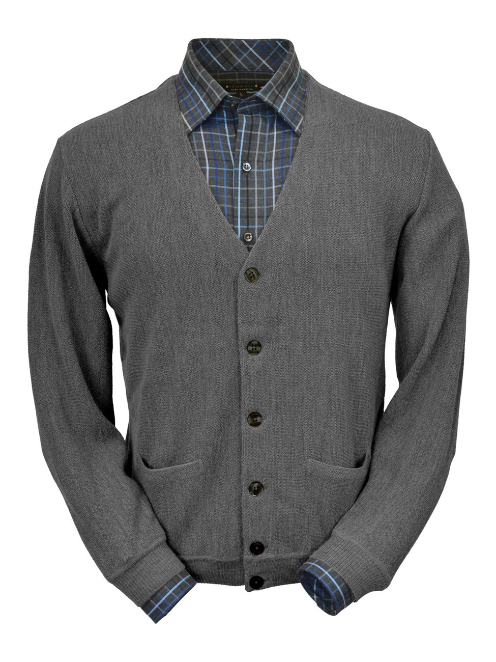 Medium Grey Heather Baby Alpaca Men Cardigan