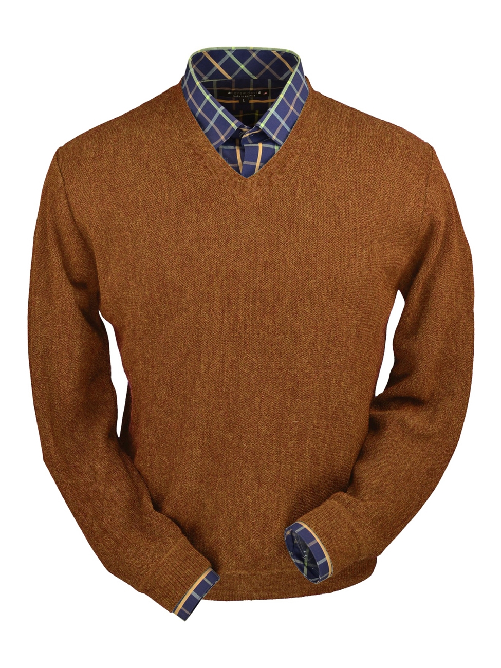→ Brick Heather Baby Alpaca Men's V-Neck Sweater