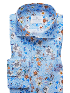 Sky Blue Flower Printed Long Sleeve Harvard Shirt