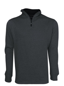 Black Ribbed Cotton Men's 3/4 Zip Pullover
