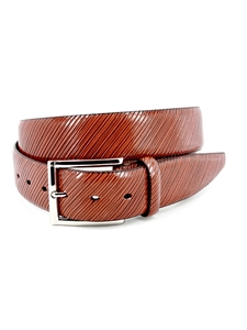 Cognac Diagonal Etched Italian Calfskin Dress Casual Belt