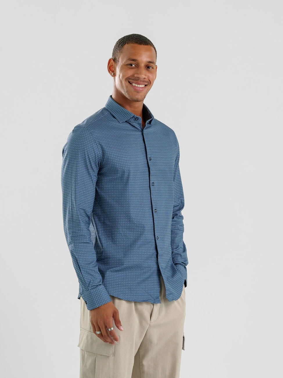 Dusk Blue Rectangular Nova Long Sleeve Men's Shirt