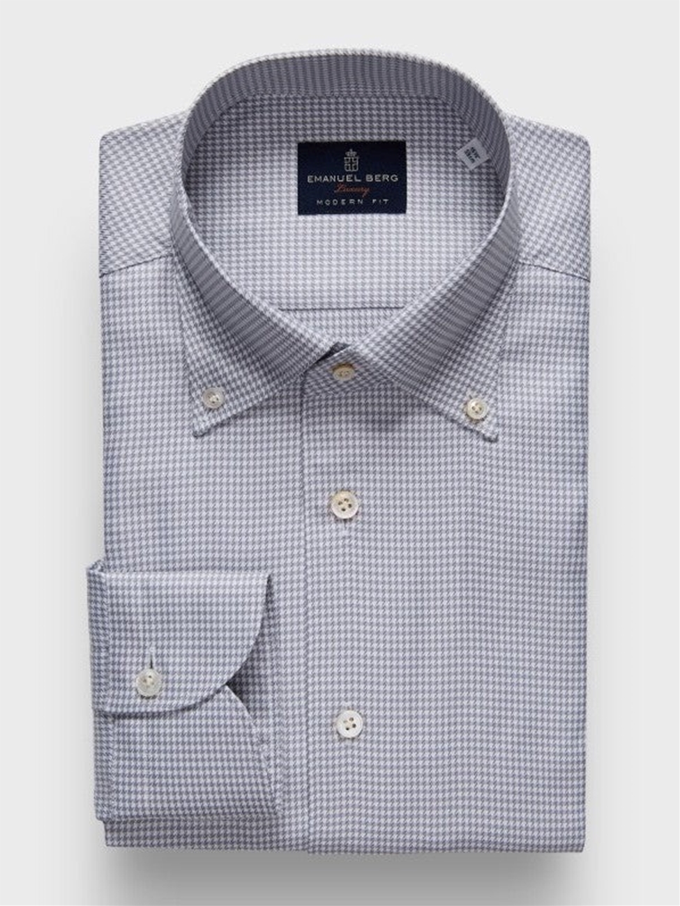 → Light Grey Houndstooth Twill Premium Men's Luxury Dress Shirt