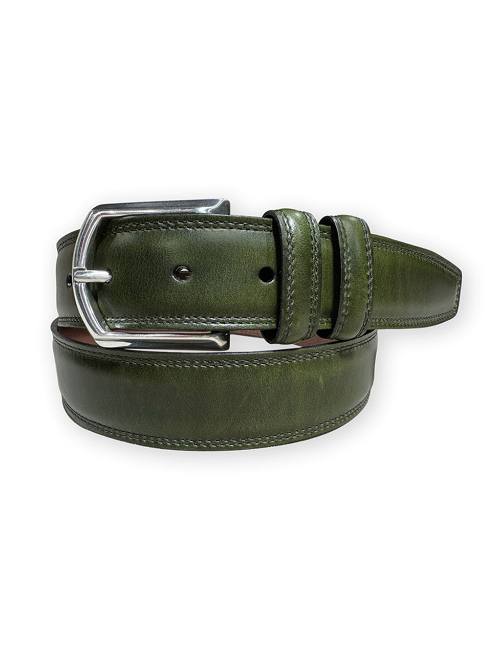 - A Classic Stitched Leather Belt In Rich Olive (London Green)