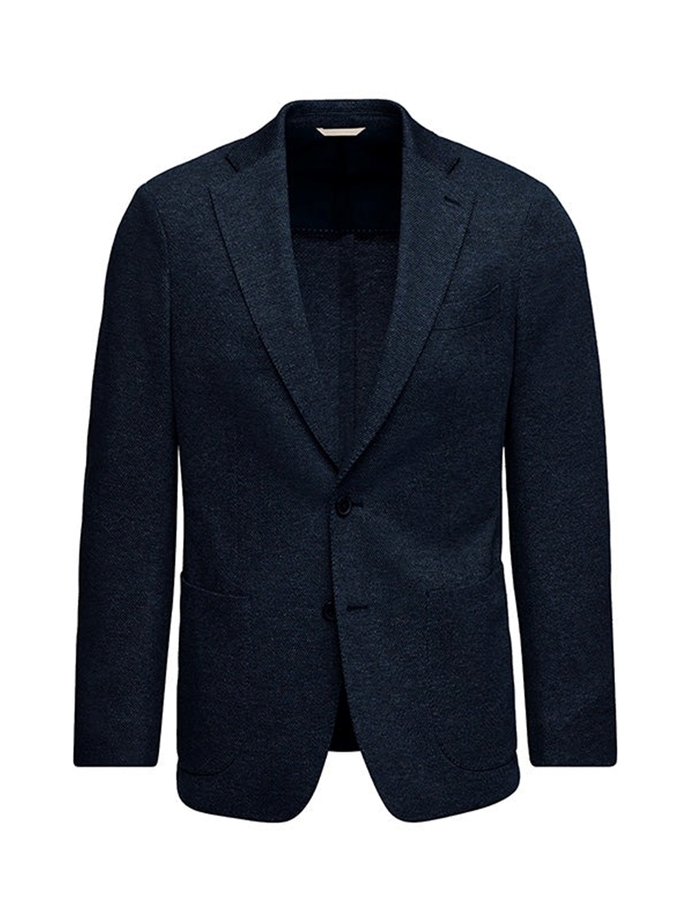 Navy Wool Blend Solid Jacquard D-Constructed Jacket