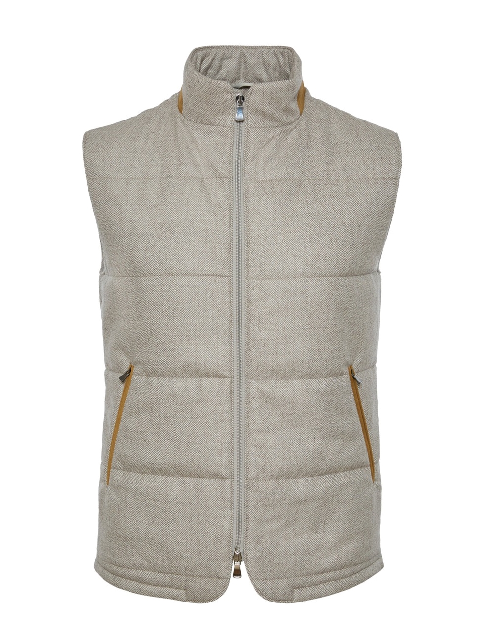 → Beige Wool Blend Herringbone Luxury Men's Vest