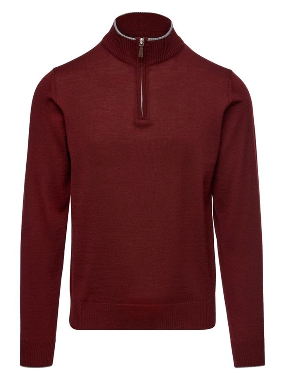 → Dark Red Light Guage Highneck With Zipper Sweater