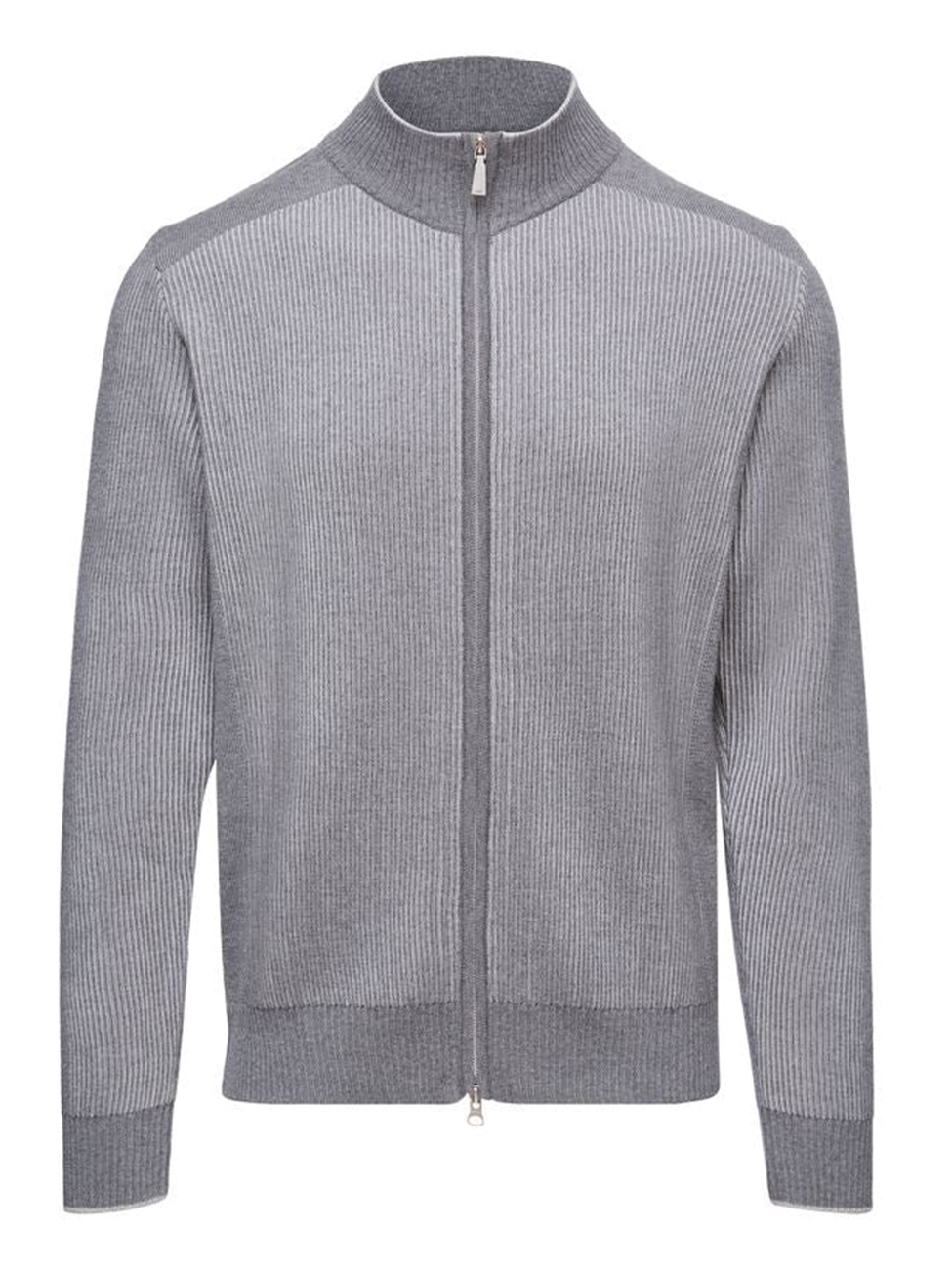 → Grey Premium Luxury Mixed Panel Zipper Cardigan