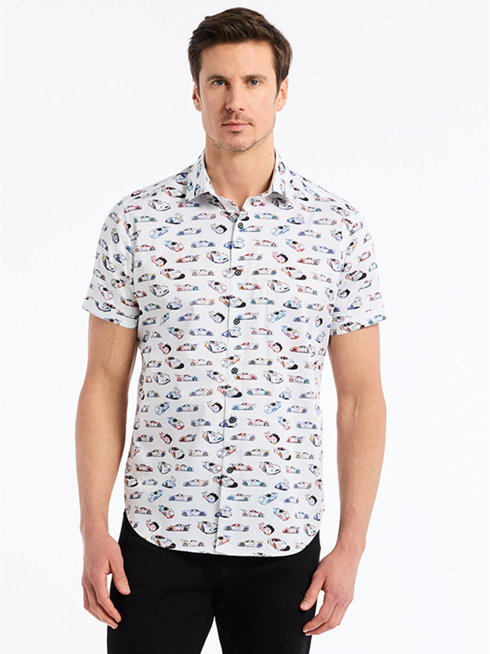→ White Neon Wheels Short Sleeve Button Down Shirt