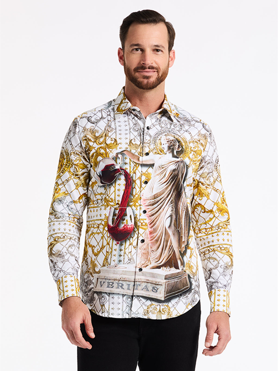 White Dionysian Long Sleeve Men's Button Down Shirt