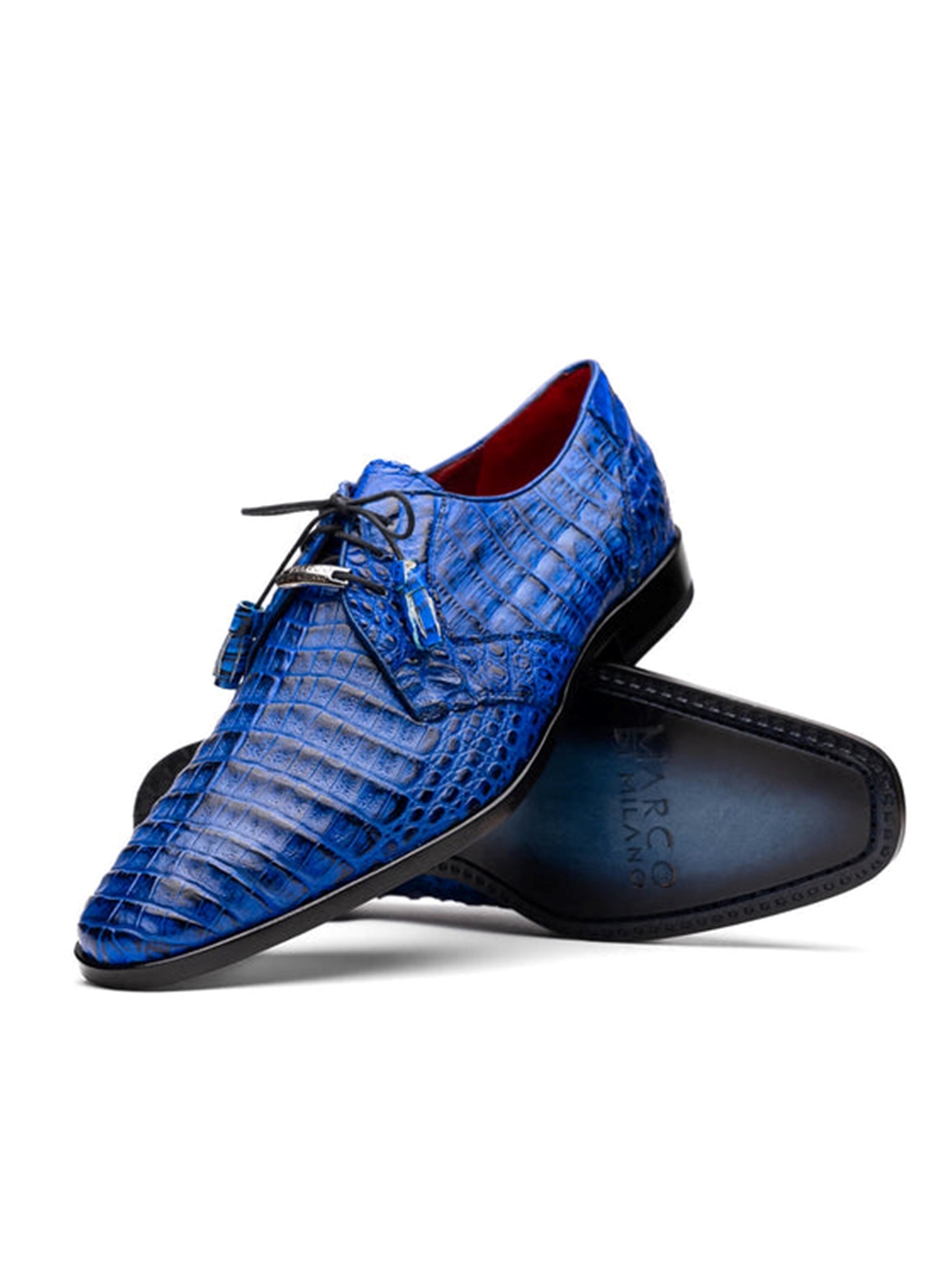 → Electric Blue Caiman Crocodile Dress Derby Men's Shoe
