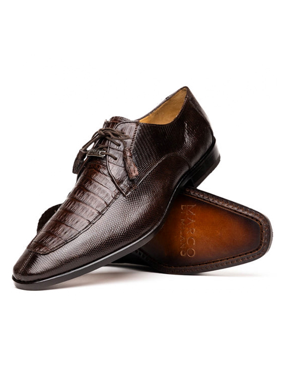 Brown Caiman & Lizard Dress Derby Men's Shoe