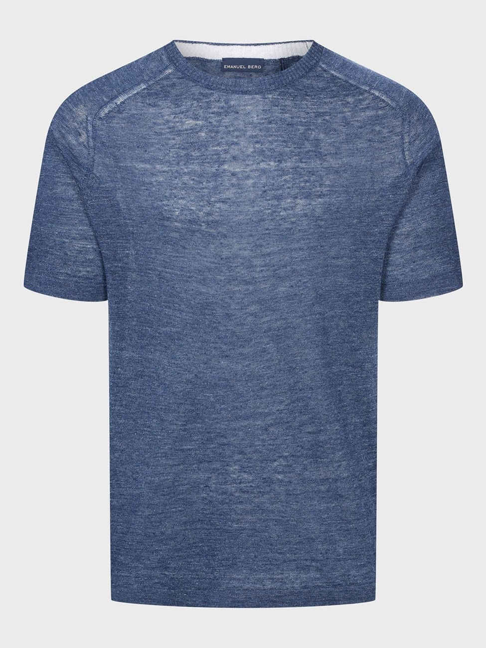 → Navy Short Sleeve Reglan Linen Crew Neck T-Shirt