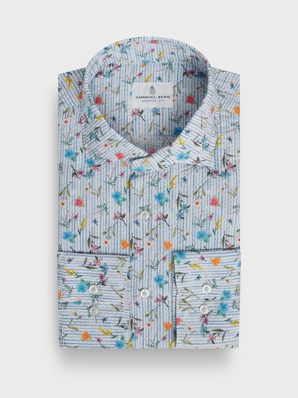 → Pastel Blue Seersucker Printed Sartorial Casual Shirt