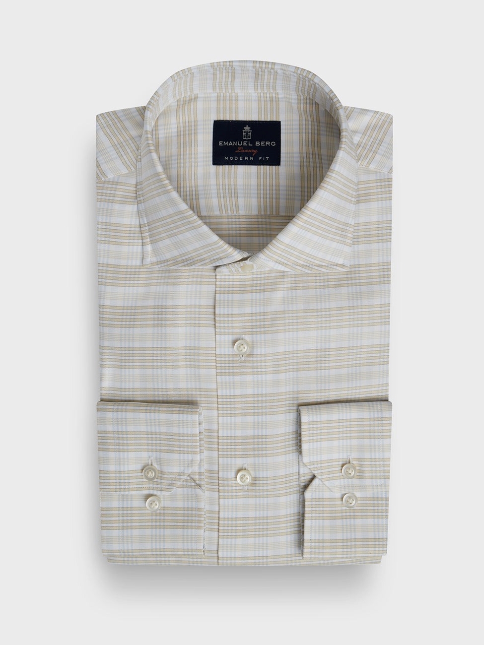 → Beige Checked Cotton Twill Natural Stretch Yoga Dress Shirt