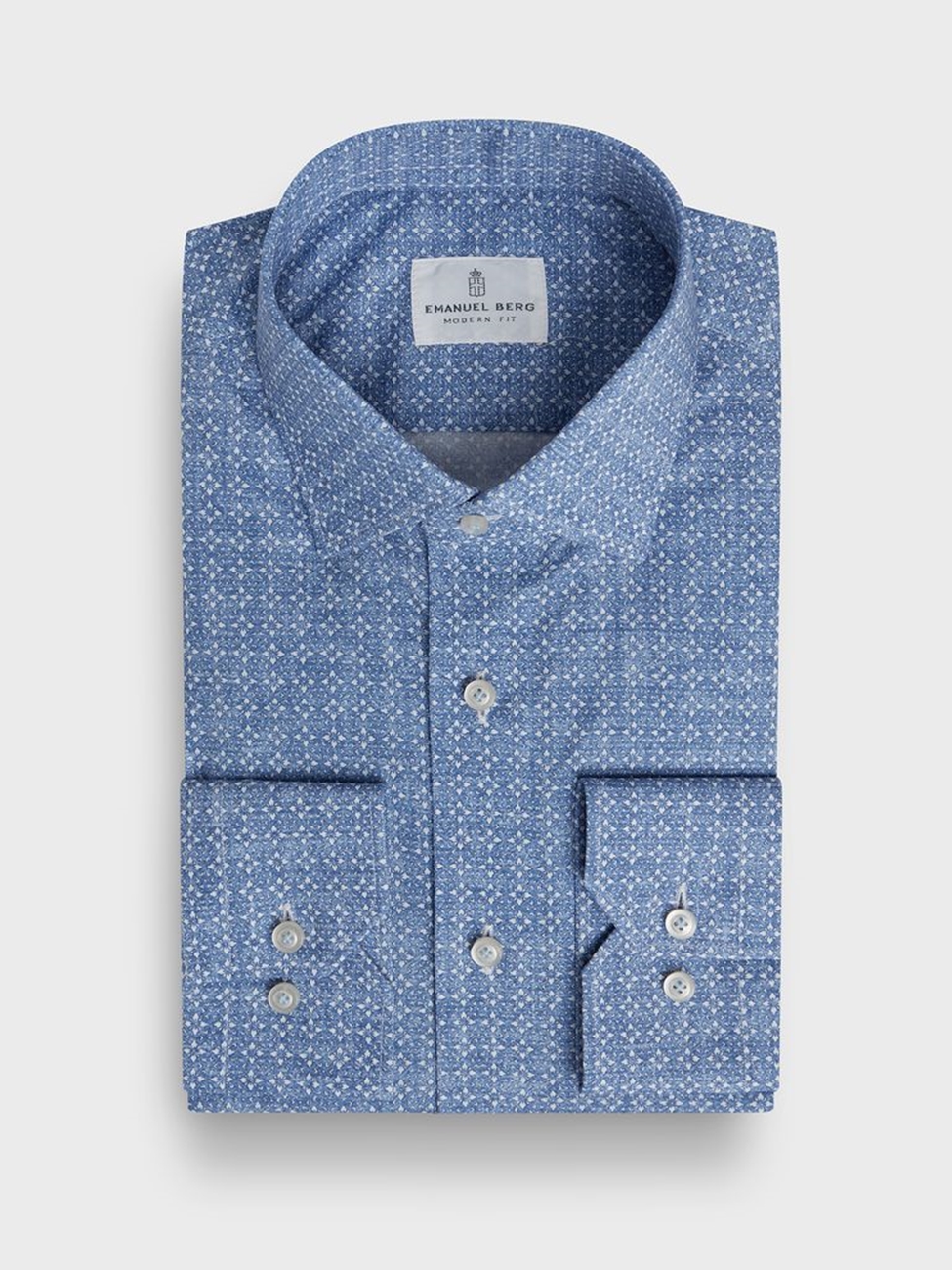→ Blue Printed Cotton Poplin Stretch Luxury Men's Dress Shirt